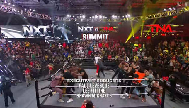 For the NXT TNA Summit, the ringside area filled up with superstars from both brands, while each brand’s GM’s and team captains were in the ring discussing this event’s importance. Both teams revealed their final members, The four men who will represent NXT are Ricky Saints, Trick Williams, Myles Bourne and Je’Von Evans. The Four men who will represent TNA are Mike Santana, Frankie Kazarian, Moose and Leon Slater. The Four women who will represent NXT are Jacy Jayne, Sol Ruca, Jaida Parker and Lola Vice. The Four women who will represent TNA are Kelani Jordan, Jessie McKay, Cassie Lee and Mara Sade.